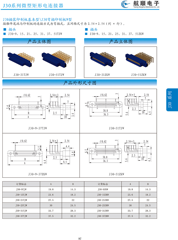符合GJB2446《外殼定位超小型矩形電連接器總規(guī)范》(相當(dāng)于美軍標(biāo)MIL-C-83513),可與美國MDM系列產(chǎn)品和國內(nèi)同類產(chǎn)品互換,在J30系列產(chǎn)品的基礎(chǔ)上增 加了鋁合金外殼與各種鋁合金尾夾;采用絞線式插針 (俗稱麻花針),單個(gè)接觸件接觸點(diǎn)達(dá)七個(gè),提高了產(chǎn)品的接觸可靠性;采用1.27mm網(wǎng)格,接觸件密度大、體積小、重量輕;現(xiàn)有9、15、21、25、31、37、51、66、74、100芯共十種型譜可供選用;適用導(dǎo)線線芯 截面積為0.07~0.15mm2,尾端可以根據(jù)用戶要求進(jìn)行 布線;本產(chǎn)品的鎖緊組件按與產(chǎn)品組裝在一起提供,如不需鎖緊組件請?jiān)诤贤凶⒚?;本系列產(chǎn)品滿足GJB2446《外殼定位超小型矩形電連接器總規(guī)范》的 要求;本系列產(chǎn)品的執(zhí)行標(biāo)準(zhǔn)如下:Q/ZHDZ GC-18《J30J系列微矩形電連接器詳細(xì)規(guī)范》。